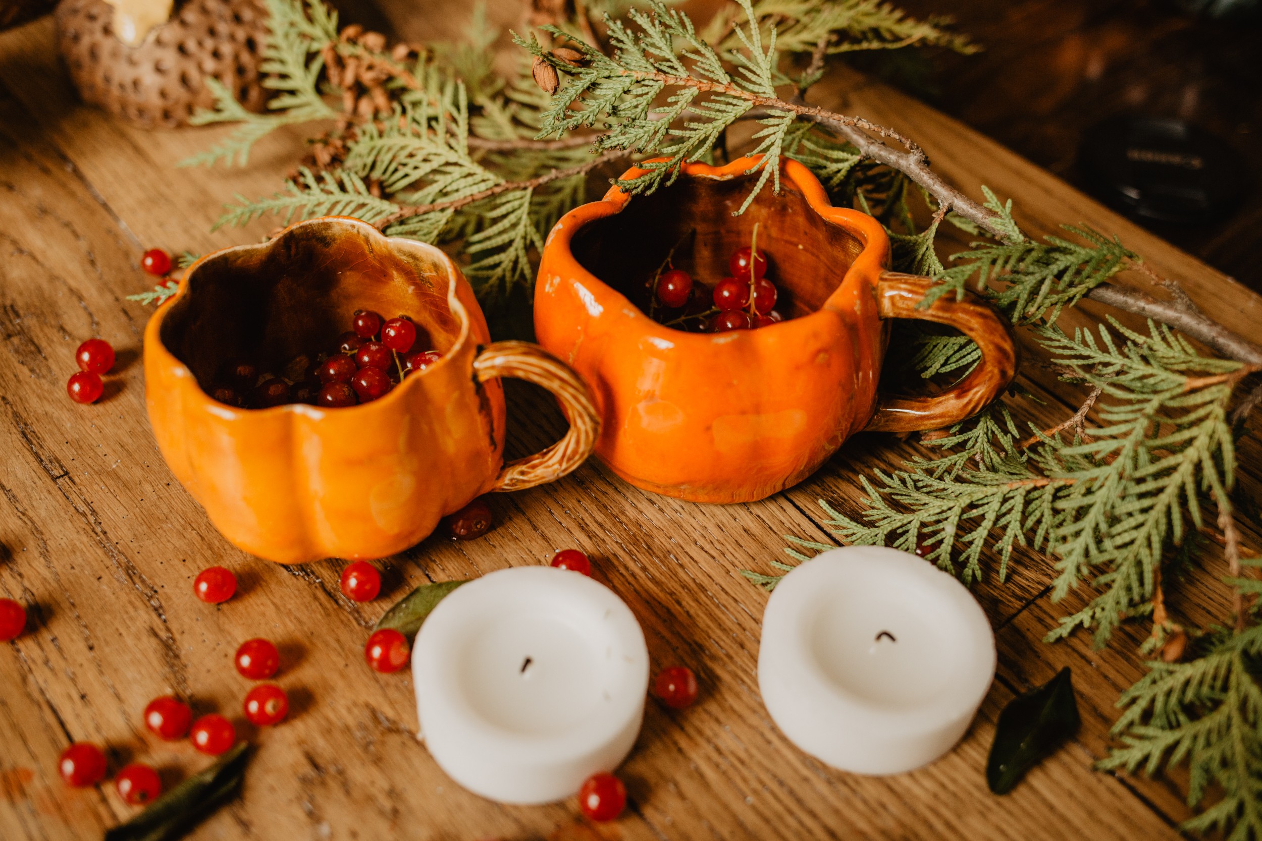Как правило мы делаем кружку с округлыми бочками, чтобы было максимально похоже на настоящую тыковку, на в целом можно сделать любую форму. Далее за столом мы делаем ручку, придаем мягкие грани основе, все соединяем, подсушиваем и декорируем с помощью стеков и петелек! Ручку, например, можно красиво стилизовать под черенок.